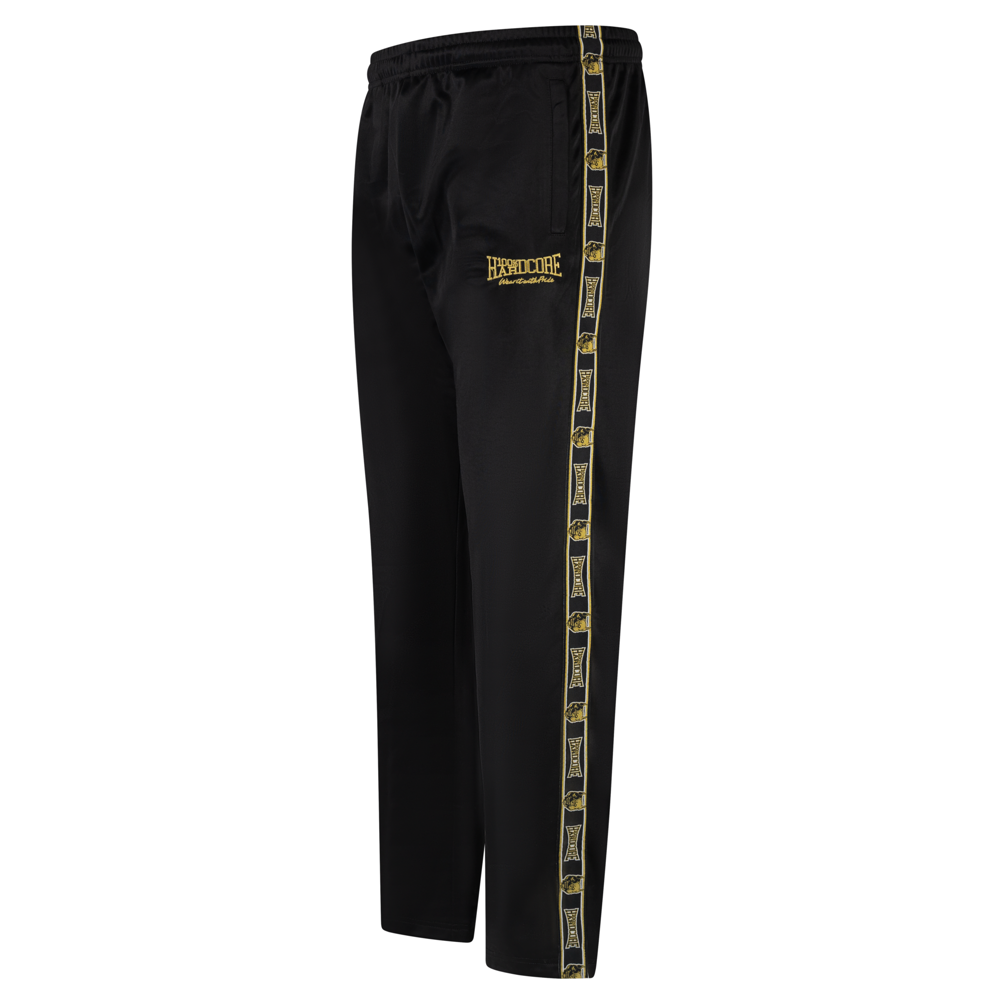 Ben je klaar om je gabber-outfit naar een hoger niveau te tillen? De nieuwste drop van 100% Hardcore is hier, en deze keer draait alles om de details. Deze collectie combineert de onvervalste hardcore-spirit met een luxe afwerking, waarbij de gouden bies de absolute hoofdrol speelt. De gouden bies is niet zomaar een detail; het is een statement. Het geeft de klassieke trainingsjacks en broeken een premium uitstraling zonder de agressieve edge van het merk te verliezen.