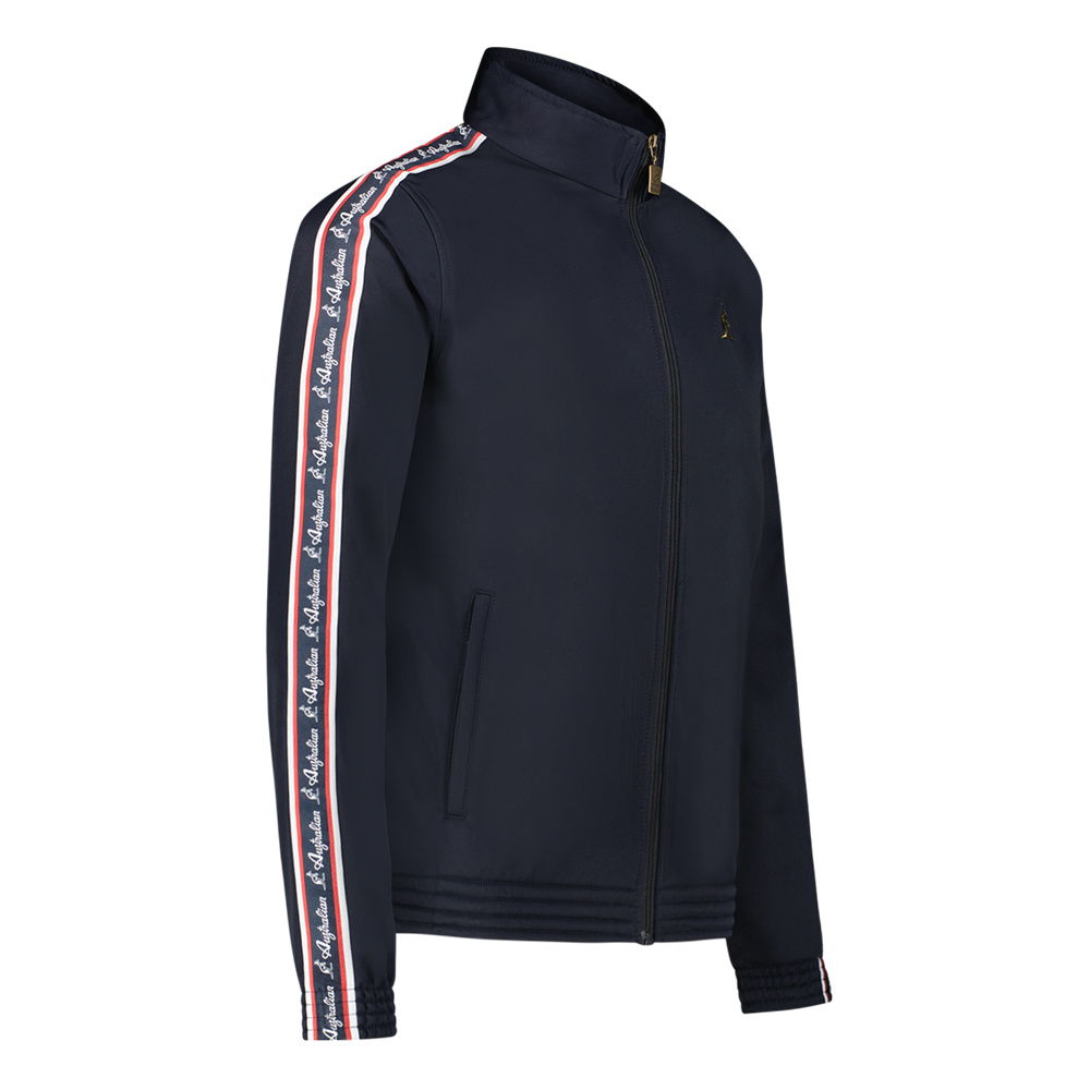 Dit Australian trainingsjasje heeft een fitted pasvorm waardoor hij iets getailleerd is om de armen. Aan beide kanten bevat dit jack een zak met ritssluiting. Dit trainingsjacket van Australian is geproduceerd in Italië en gemaakt van het materiaal Acetate. Acetate is een combinatie van Polyamide (66%) en Polyester (34%) waardoor zowel de buitenkant als de binnenkant van het jack extra zacht aanvoelt en super comfortabel draagt. Over de mouwen loopt een bies met gouden Australian-kangoeroes en zilveren letters. Op de linkerborst staat de kangoeroe van Australian in het goud geborduurd.